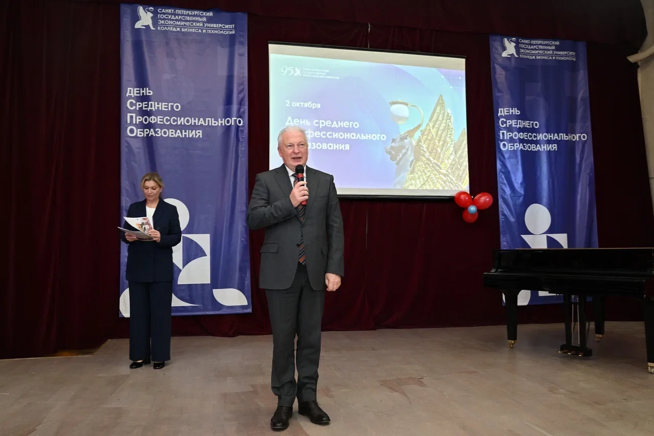 2 октября в Колледже бизнеса и технологий прошло торжественное мероприятие, посвященное 85-летию системы среднего профессионального образования России и 95-летию Санкт-Петербургского государственного экономического университета.