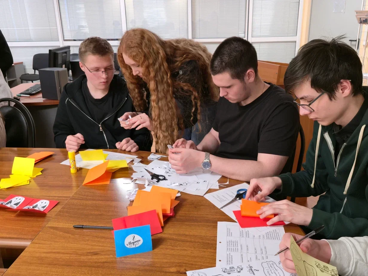 Однако подготовка к празднованию не утихала на протяжении всей недели: молодые люди из групп 1-2 курсов каждый день трудились над изготовлением поздравительных открыток с теплыми посланиями нашим девушкам и женщинам. А сами поздравительные открытки были вручены виновницам торжества на концерте.