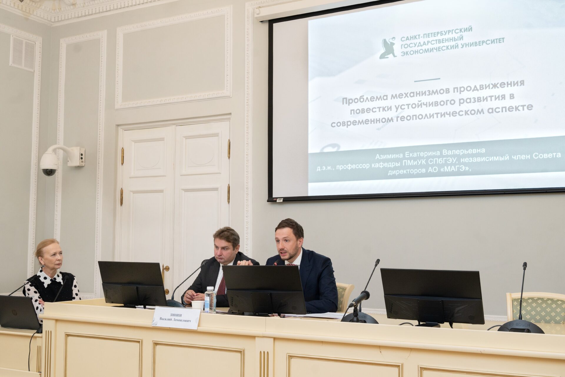 В рамках Пленарного заседания были заслушаны доклады Горбашко Е.А. – проректора по научной работе СПбГЭУ, Бородина В.И. – генерального директора ООО «Газпром трансгаз Томск», Миронова Д.Е. – генерального директора Российского института стандартизации, Вощинчук А.Н. – заместителя директора Национального агентства по туризму Республики Беларусь, Чужавского А.В. – директора по импортозамещению АО «Газпром шельфпроект» и Салимовой Т.И. – директора института (экономический институт) НИ МГУ им. Н.П. Огарева.