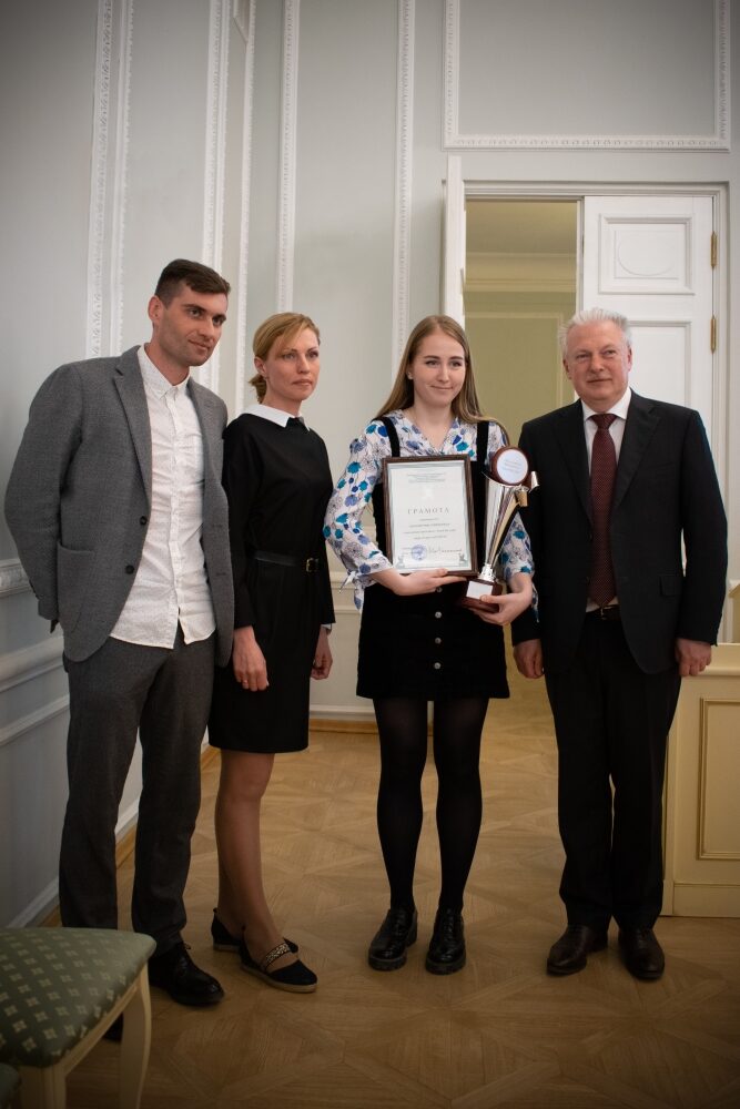 В присутствии представителей организаторов мероприятия — старших преподавателей кафедры физической культуры Евгении Поздняковой и Павла Долотцева, награду из рук ректора получила капитан команды «Ракета релакса» Софья Шыхнюк за 1 место по итогам всех конкурсов.