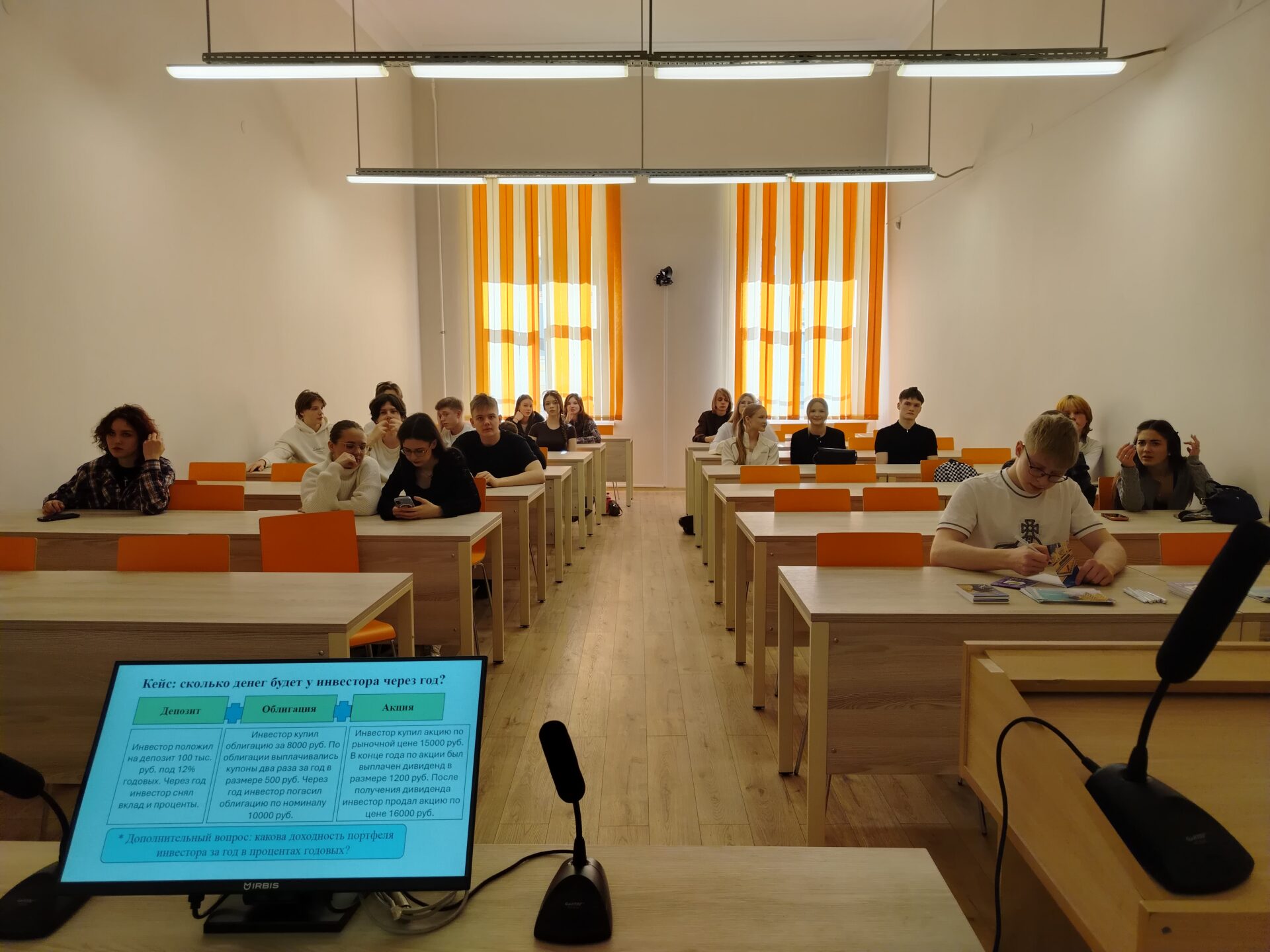 На мастер-классе абитуриенты узнали об особенностях работы на финансовом рынке, провели анализ инвестиционных инструментов с учетом риска и доходности, решили практические кейсы. Участники проявили интерес к профессии и желание в дальнейшем поступить в наш университет. Профориентационную встречу провела доцент кафедры банков, финансовых рынков и страхования Кравцова Наталья Игоревна.