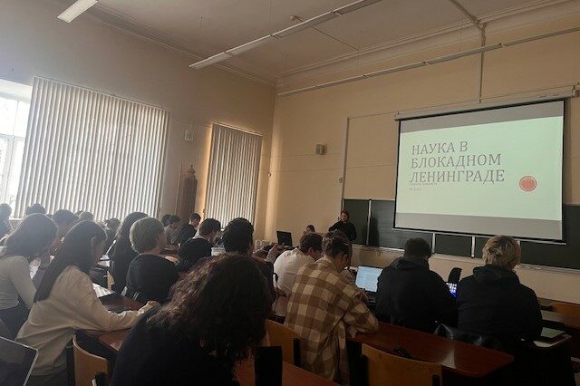 Также на мероприятии с докладами выступили обучающиеся направления «Реклама и связи с общественностью». Студентка Пинкова Е.С. (РС-2502) рассказала о героической работе ученых в блокадном Ленинграде; доклады Мубаракшиной А.О. и Яркиной Н.Е. (РС-2504) посвящены партизанскому движению в Белоруссии в творчестве А. Адамовича и истории создания А. Адамовичем и Д. Граниным «Блокадной книги»; Литвиненко А.А. и Плуг Н.Г. (РС-2504) рассказали о Хабаровском процессе; Колобов И.Е. и Орленко Ф.А. (РС-2502) о Нюрнбергском процессе и его освещении в дневниках Б. Полевого. Выступление Старорусской А.Я. (РС-2503) было посвящено подвигу ее прадеда, в честь которого был назван поселок в Ленинградской области. Мероприятие вызвало у обучающихся большой интерес. Они активно задавали вопросы, обсуждали актуальные исторические аспекты Великой Отечественной войны.