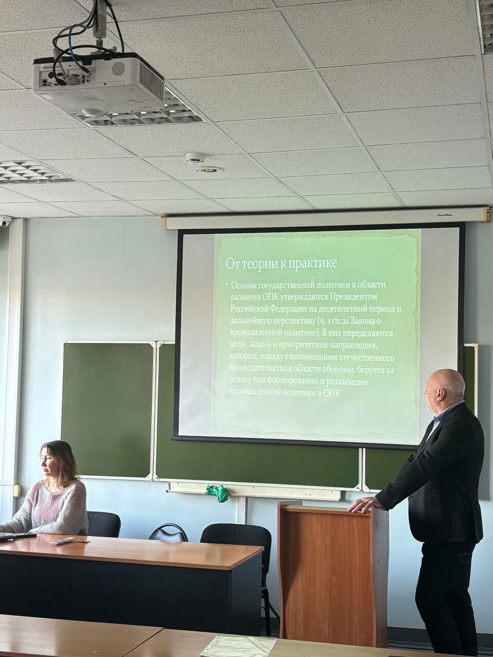 На встрече выступил Ващилло Антон Анатольевич, заместитель генерального директора ПАО «Светлана», холдинга, занимающегося разработкой и выпуском мощных электровакуумных приборов и изделий микроэлектроники, рентгеновского оборудования. В рамках встречи студенты узнали об особенностях отрасли оборонно-промышленного комплекса, о существующих требованиях к специалистам в экономике ОПК, об изменившейся экономической среде и как можно найти в ней место. Антон Анатольевич поделился практическими примерами из деятельности холдинга, рассказал, каким видит будущее ведущее предприятие в микроэлектронике и ответил на вопросы студентов, которых интересовали не только вопросы трудоустройства, но и как устроена деятельность компании в текущей действительности.