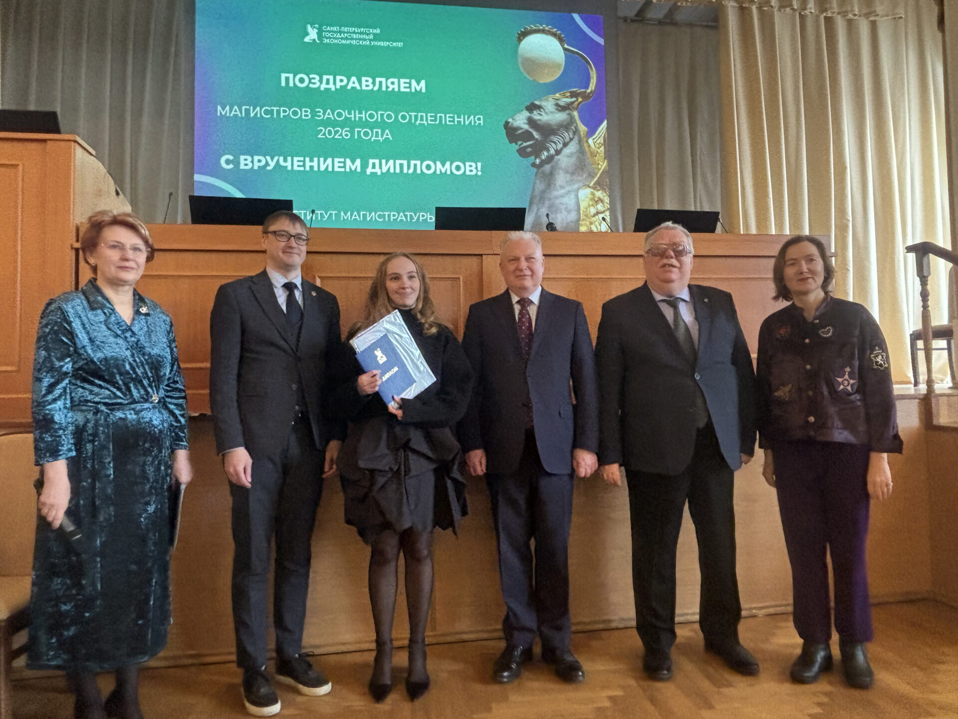 5 марта 2026 года состоялось важное событие для всех выпускников магистерской программы «Логистические и маркетинговые стратегии клиентоориентированности транснациональной транспортно-логистической компании»: им были вручены дипломы магистров на торжественной церемонии в актовом зале главного здания Санкт-Петербургского государственного экономического университета на канале Грибоедова.