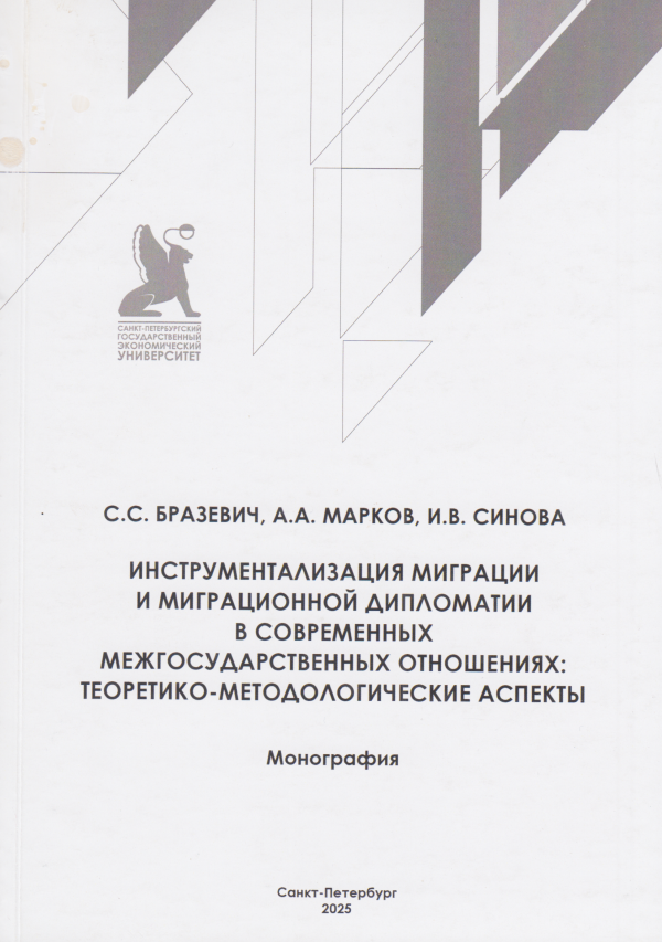 Бразевич, Святослав Станиславович. Инструментализация миграции и миграционной дипломатии в современных межгосударственных отношениях: теоретико-методологические аспекты : монография / С.С.Бразевич, А.А.Марков, И.В.Синова ; М-во науки и высш. образования Рос. Федерации, С.-Петерб. гос. экон. ун-т, Гуманитар. фак., каф. междунар. отношений и политологии.- Санкт-Петербург : Изд-во СПбГЭУ, 2025.-1 файл (1,15 Мб).- Загл. с титул. Экрана.-Имеется печ. аналог. — Авторизованный доступ по паролю. — Текст (визуальный) : электронный. — Библиогр.: 433 назв. — ЭБ OPAC.UNECON.RU. — ISBN 978-5-7310-6657-0.