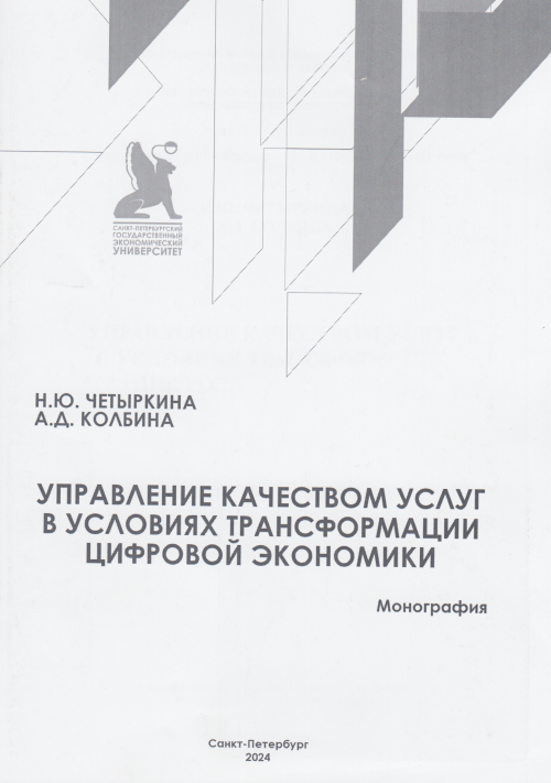 Четыркина, Наталья Юрьевна. Управление качеством услуг в условиях трансформации цифровой экономики : монография / Н.Ю.Четыркина, А.Д.Колбина ; М-во науки и высш. образования Рос. Федерации, С.-Петерб. гос. экон. ун-т, фак. упр., каф. проект. менеджмента и упр. качеством/ — Санкт-Петербург : Изд-во СПбГЭУ, 2024. — 1 файл (724 Кб). — Загл. с титул. экрана. — Имеется печ. аналог. — Авторизованный доступ по паролю. — Текст (визуальный) : электронный. — Библиогр. в конце текста и в подстроч. примеч.- ЭБ OPAC.UNECON.RU. — ISBN 978-5-7310-6572-6.