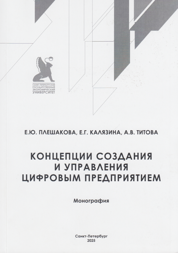 Плешакова, Елена Юрьевна. Концепции создания и управления цифровым предприятием : монография / Е.Ю.Плешакова, Е.Г.Калязина, А.В.Титова ; под ред. Е.Ю.Плешаковой ; М-во науки и высш. образования Рос. Федерации, — С.-Петерб. гос. экон. ун-т, фак. упр., каф. проект. менеджмента и упр. качеством.