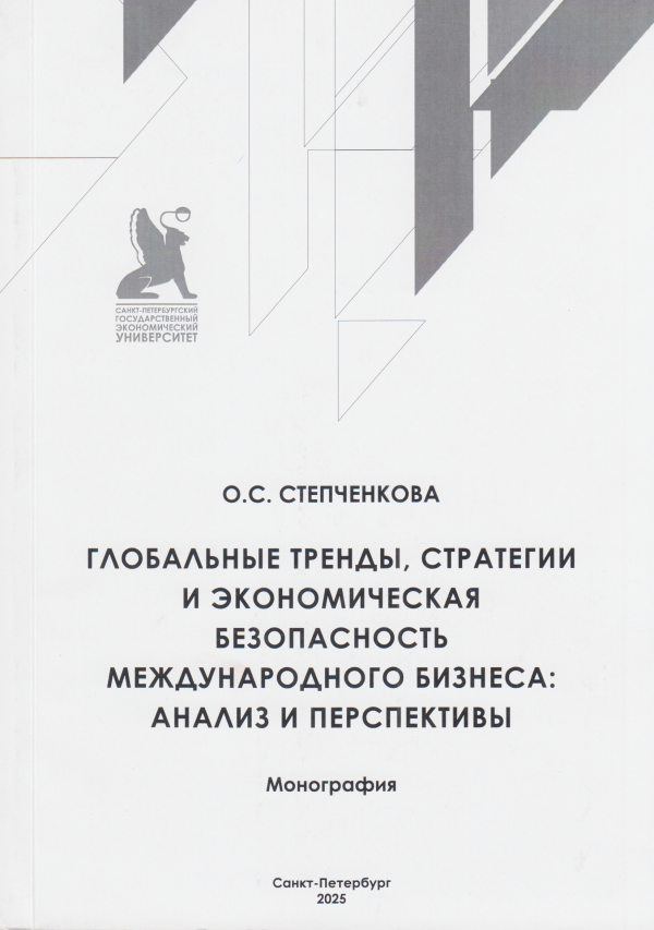Степченкова, Ольга Сергеевна/ Глобальные тренды, стратегии и экономическая безопасность международного бизнеса: анализ и перспективы: монография / О.С.Степченкова ; М-во науки и высш. образования Рос. Федерации, С.-Петерб. гос. экон. ун-т, фак. упр., каф. междунар. бизнеса. — Санкт-Петербург : Изд-во СПбГЭУ, 2025. — 1 файл (1,89 Мб). — Загл. с титул. экрана. — имеется печ. аналог. — Авторизованный доступ по паролю. — Текст (визуальный) : электронный. — Библиогр.: 145 назв. и в подстроч. примеч. — ЭБ OPAC.UNECON.RU. —