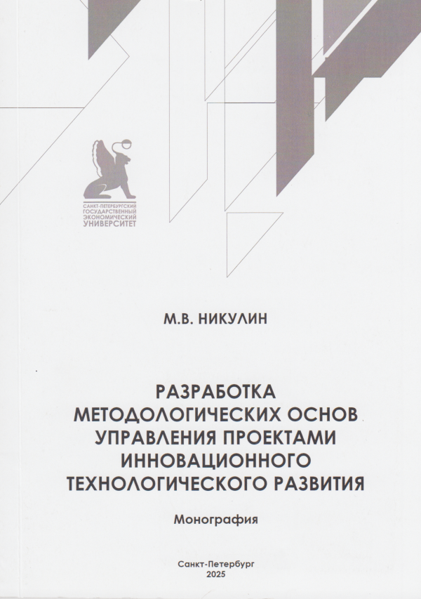 Никулин, Михаил Владимирович. Разработка методологических основ управления проектами инновационного технологического развития: монография/ / М.В.Никулин ; М-во науки и высш. образования Рос. Федерации, С.-Петерб. гос. экон. ун-т, фак. упр., каф. проект. менеджмента и упр. качеством. — Санкт-Петербург : Изд-во СПбГЭУ, 2025. — 1 файл (25,2 Мб). — Загл. с титул. экрана. — Имеется печ. аналог. — Авторизованный доступ по паролю. -Текст (визуальный): электронный. — Библиогр.: 53 назв. — ЭБ OPAC.UNECON.RU. — ISBN 978-5-7310-6682-2.