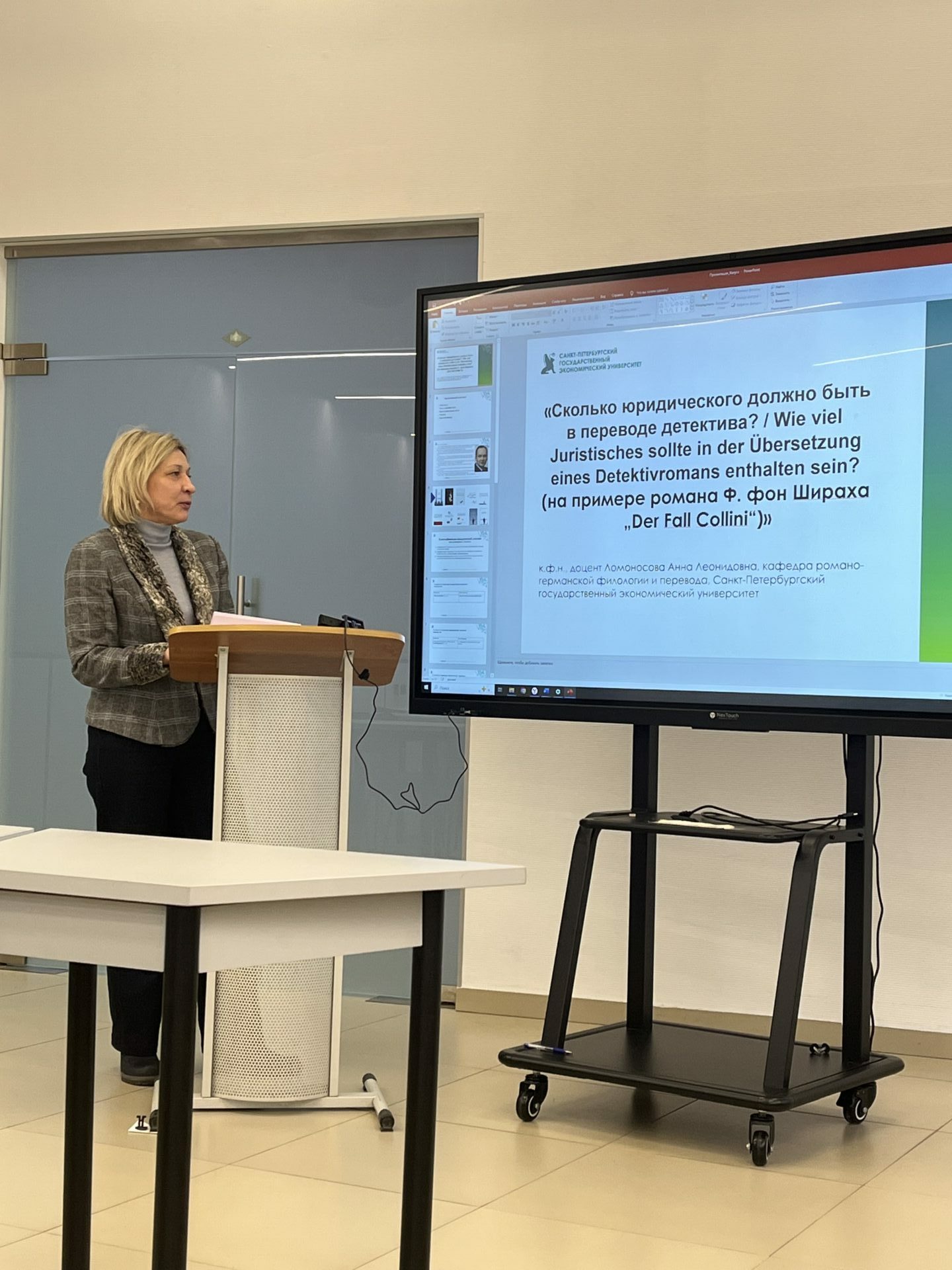 Доцент кафедры романо-германской филологии и перевода Ломоносова А.Л. представила на секции «Проблемы современной компаративистики» доклад по теме «Wie viel Juristisches sollte in der Übersetzung eines Detektivromans enthalten sein?».