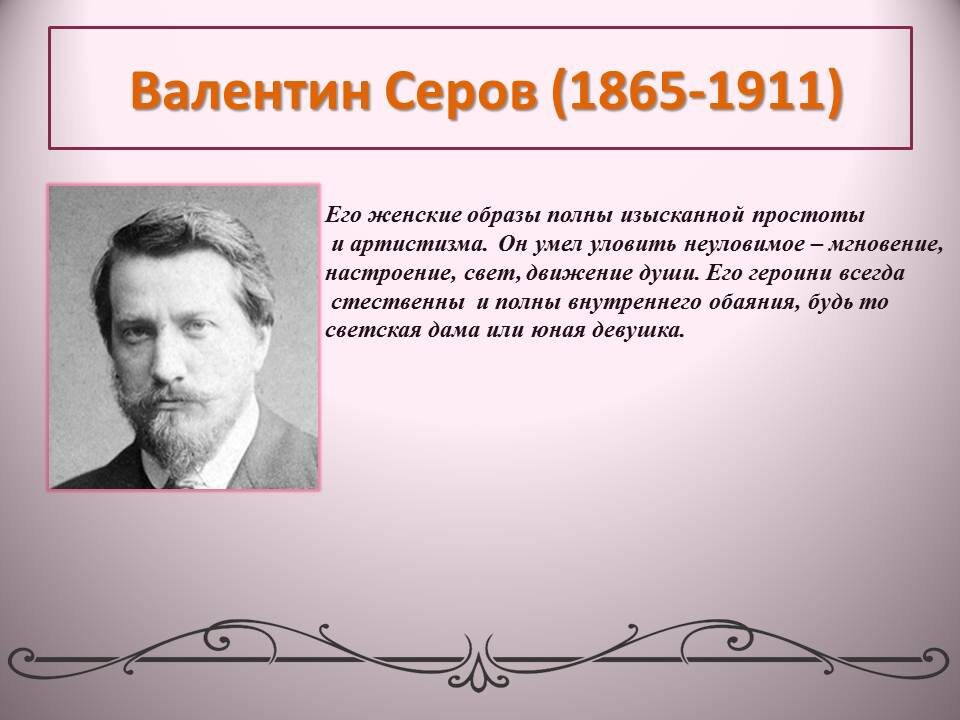 В альбоме воспроизводятся портреты, картины и рисунки Валентина Александровича Серова (1865-1911). Серов один из крупнейших русских художников, выдающийся портретист и прекрасный рисовальщик, автор таких широко известных картин-портретов, как «Девочка с персиками», Девушка, освещенная солнцем», «Портрет артистки М.Н. Ермоловой» и многих других.