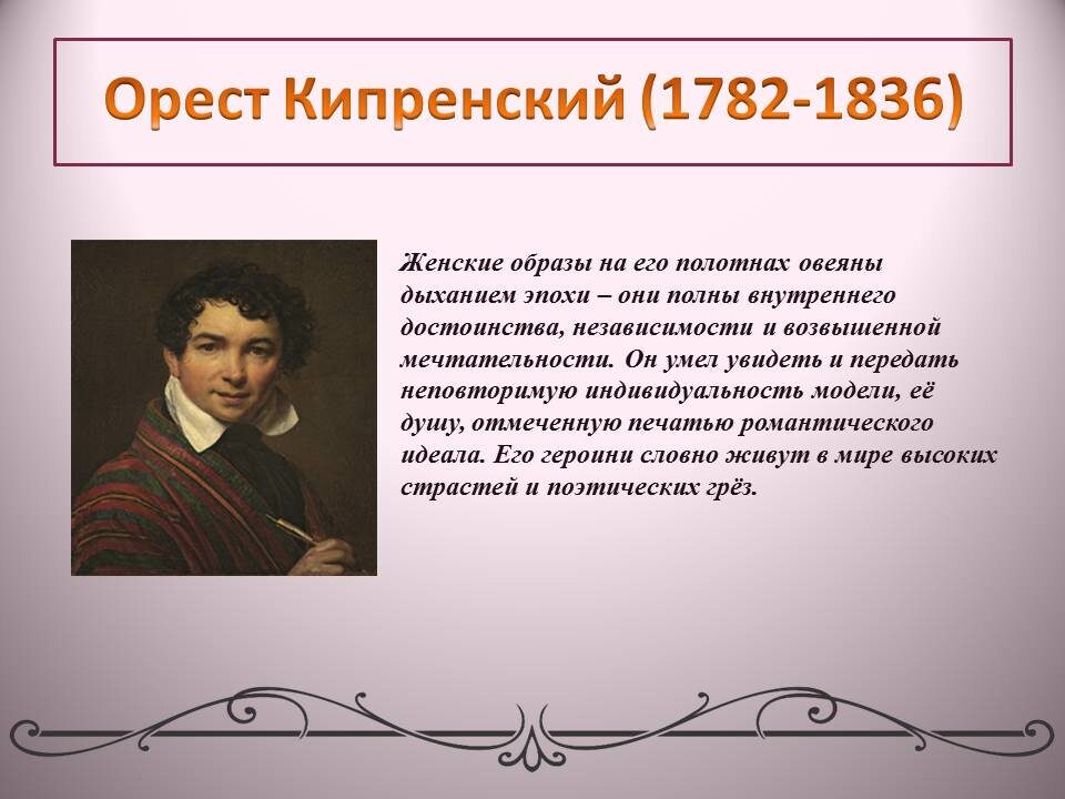 В издании рассматривается творчество О.А. Кипренского на фоне общественной и культурной жизни России первой четверти XIX века. Воспроизведены портреты, имеющие первостепенное значение для творчества Кипренского и вместе с тем представляющие крупнейшие имена русской культурной эпохи. Интерес представляют атрибуции автора портретов великого польского поэта и философа А.Х. Востокова.