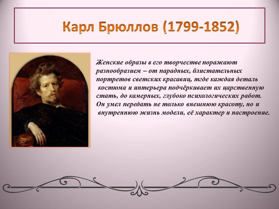 Краеведческий очерк о жизни великого русского художника Карла Брюллова в Петербурге, его обучении в Академии художеств, об успехе его картины «Последний день Помпеи», привезенной после ее триумфа в европейских странах в русскую столицу, о трагической судьбе на родине, о дружбе с М.И. Глинкой, литераторами, художниками, учениках и последователях.