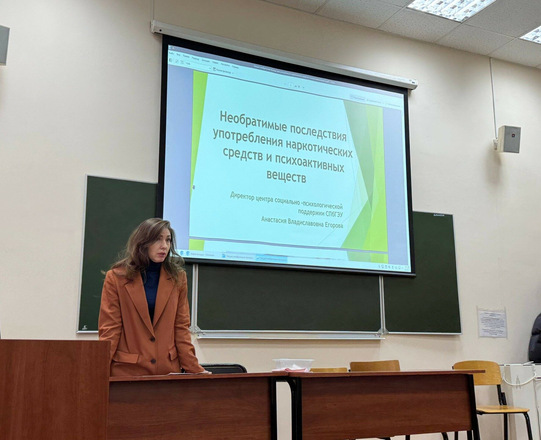 21 ноября 2025 студентами гуманитарного факультета была прослушана лекция на тему «Необратимые последствия употребления наркотических средств и психоактивных веществ».