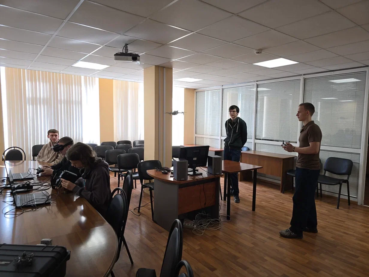 Во время урока по беспилотным авиасистемам студенты не только узнали об их применении, видах и возможностях, но и смогли попробовать свои силы на симуляторах и в управлении настоящим квадрокоптером серии Mavic. Занятие проводил Святослав Скориантов.